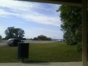 As I was finishing up with writing and the battery was dying on my laptop, God decided to have some fun.  Since it was nice day out I decided my “office” would be at an area park where there was a pond and a river, however, God spoke and said it was not the place, so I drove further into town and found a place along the bike path by a local boat launch.  What an office!  The lake, the sun and the occasional greeting from skateboarding teenagers and bikers!  As I was beginning to pack up a gentlemen came down the bike path walking his bike.  He kindly asked if he could sit at the other table next to me and plopped down looking exhausted.
