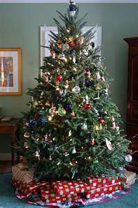So today we arrive at famous Christmas Tree. We spend lots of time on this part of Christmas. Some trudge through the woods picking out and cutting down just the right tree. Others go to a Christmas tree farm to pick out the perfect one. And still many others choose to buy a fake tree at the local department store where there are many colors and sizes to choose from. Some have lights, some are white, some are green: the possibilities are almost endless. Then after picking out said tree, we go about fitting it into our living spaces and spend the next few days before Christmas fussing with it. Those of us who have animals spend a good time scolding our dear pets for even glancing at the tree. Those with small children have the added headache of making sure ornaments and what not do not find there way into little hands and mouths.