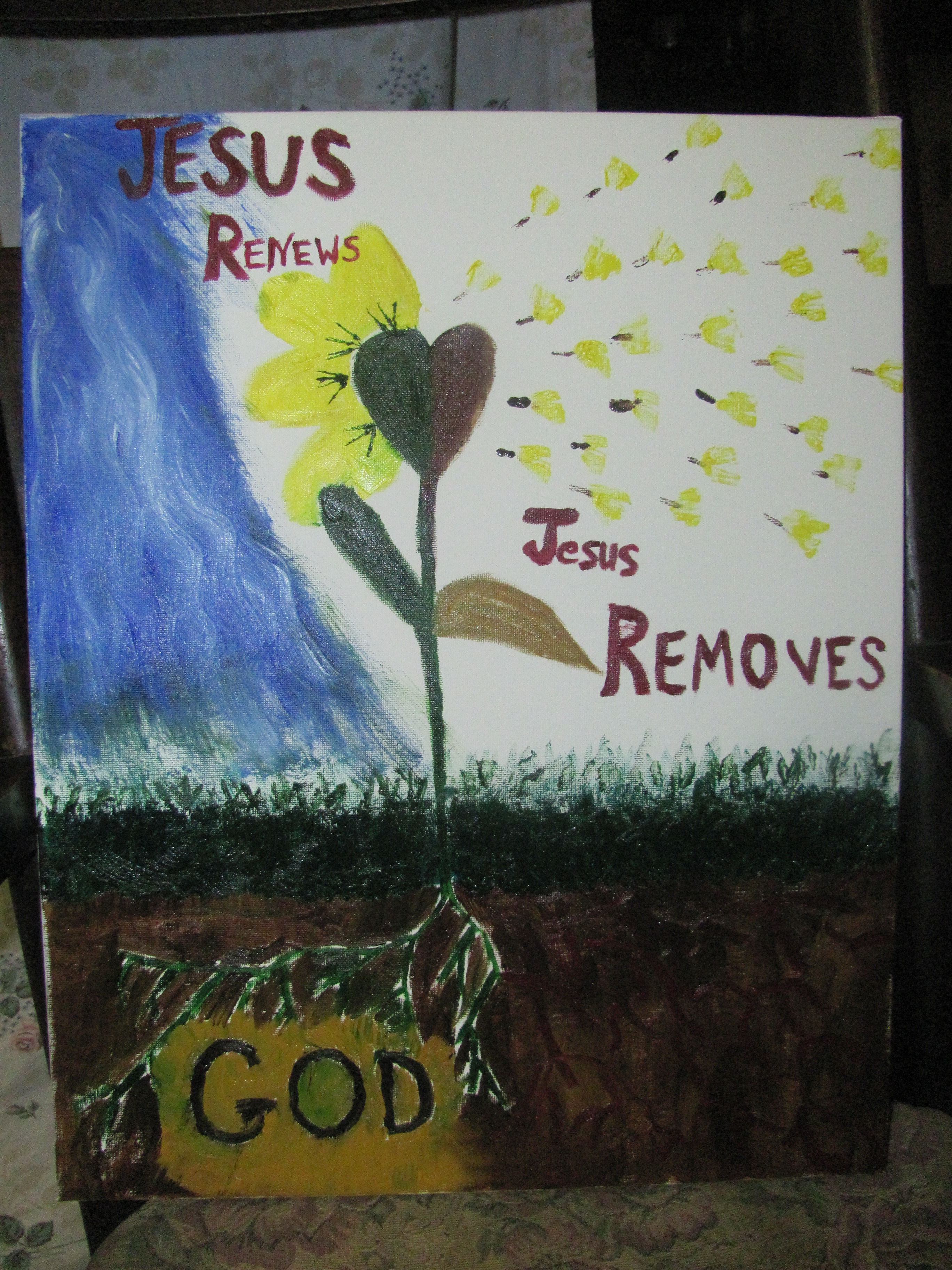 As I pondered on why the red for the roots, God showed me that even though the past is gone and He removed the pain and guilt from it, it still needed to be covered by the blood of Jesus. As He washes over us He not only cleanses but He brings healing to the inner soul. Sometimes others don’t see all the changes which come when God does a work in someone, however the person going through the renewal process knows exactly what God is healing on the inside.