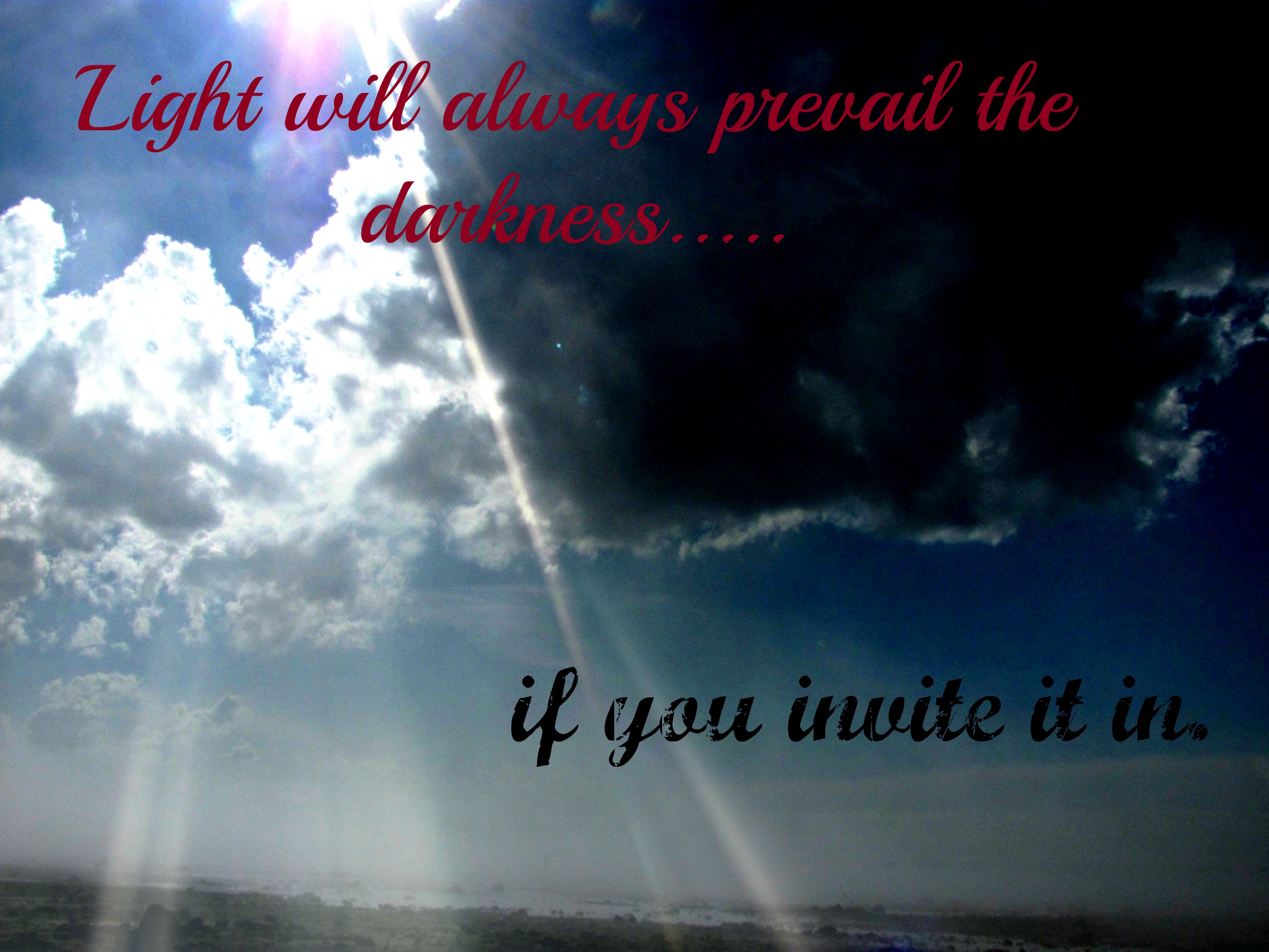 As for me, I have to stop pressing the panic button and turn it all over to God.  I have to trust that He is and will always be in control of every situation I get myself into.  I have to stop, breathe and let go.  I have to come to the realization that sometimes things just happen and often for a reason beyond my understanding.  I have to trust in the Lord will all that I am, knowing that He has this all figured out already.  We have to allow the Light to shine over the darkness so that we may be filled with joy and contentment.