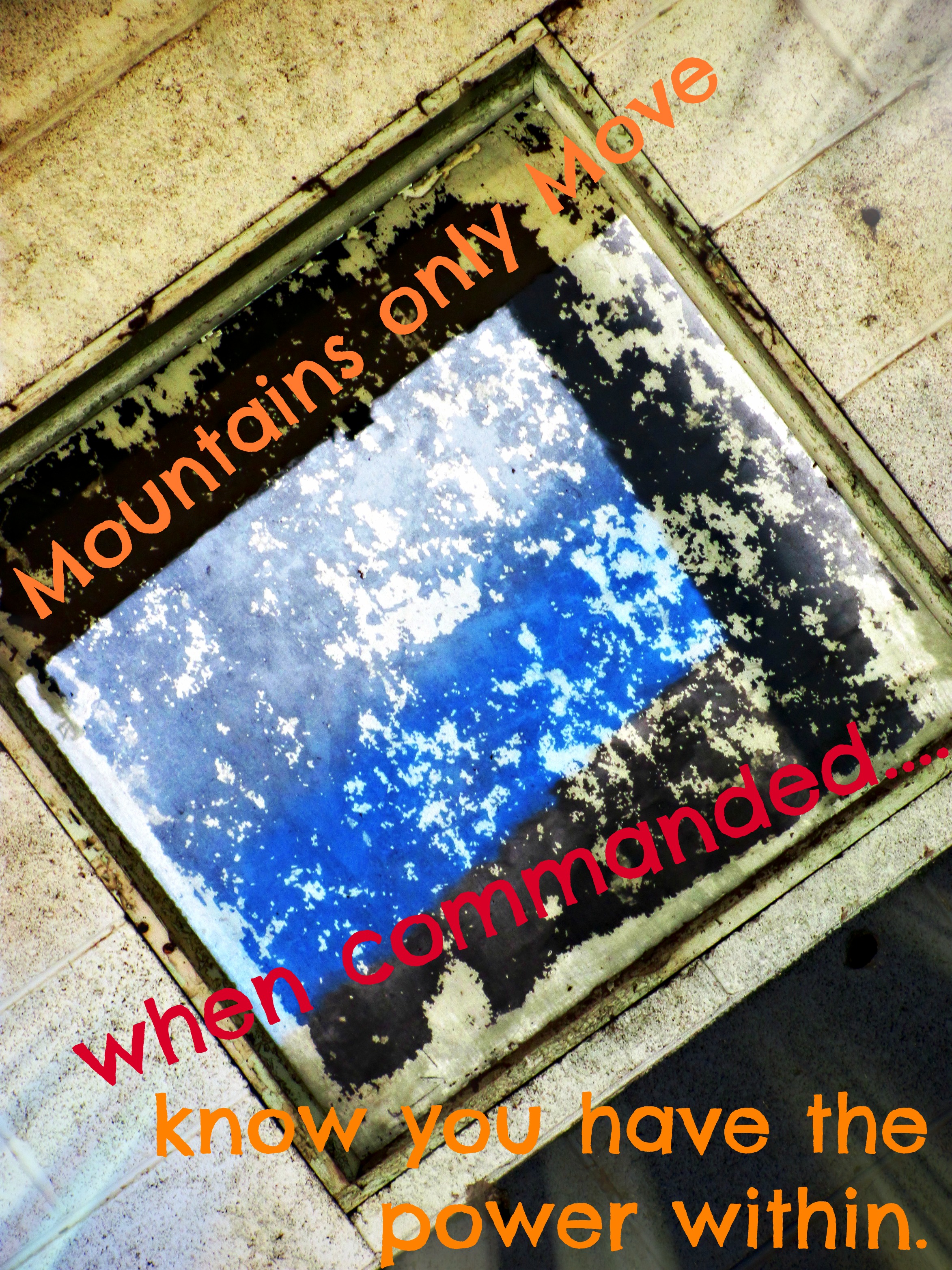 Ever found yourself building your own mountain?  Piece by piece, layer upon layer.  Might start out as a small bump in the road of our adventure and then suddenly it is this big unmovable mountain.  We get ourselves so worked up about whatever situation it might be that we can no longer see anything but this huge mound of not moving disaster.  There upon moves in the guilt and self doubt along with failure and disbelief.  A flood of emotions soon follow and before you know it you are having a panic attack of sorts and you revert to survival mode, no longer finding hope.