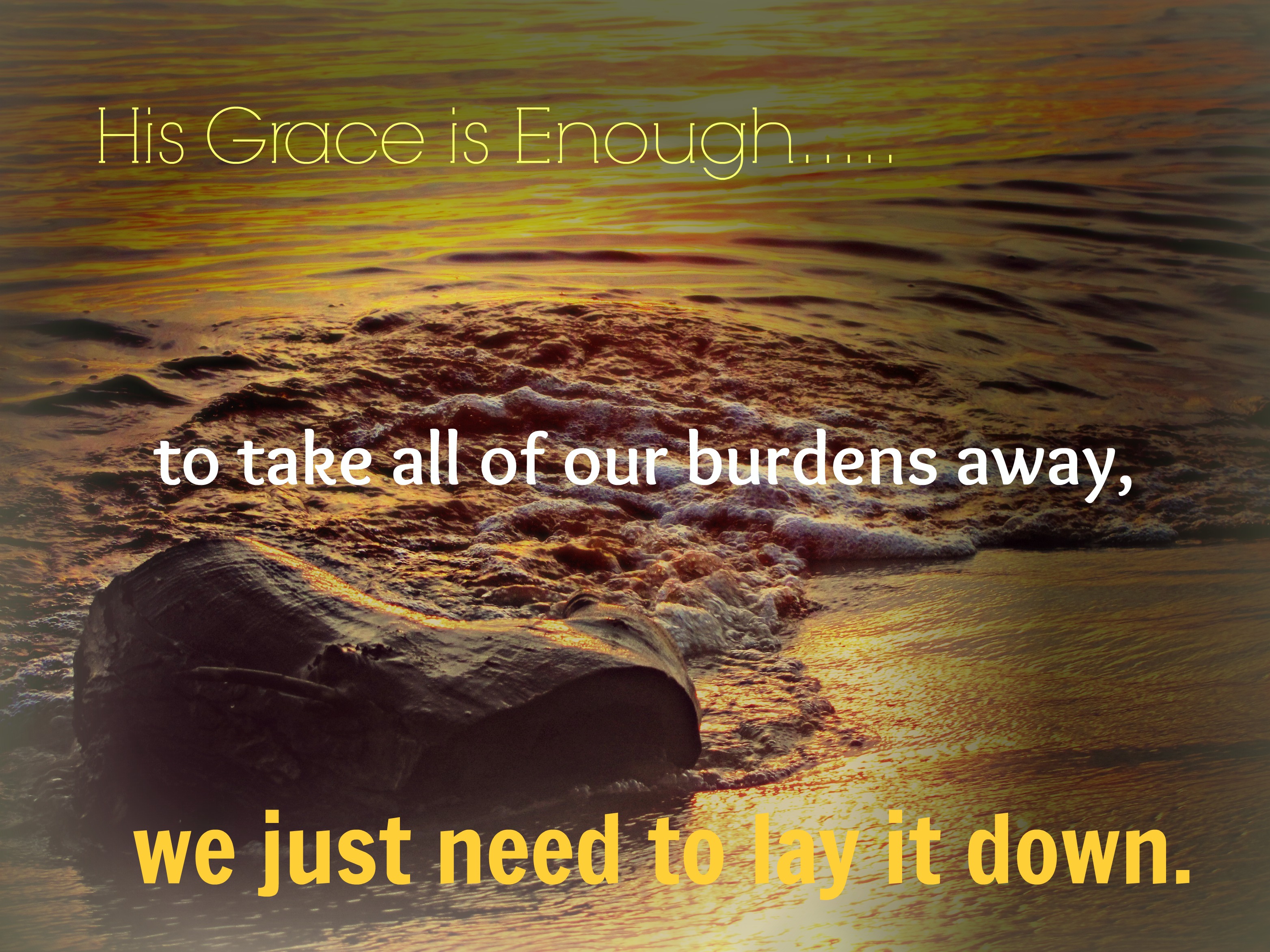 During worship this past Sunday as we were singing His Grace is Enough, our associate pastor stood up and gave us a word picture about this very thing.  He said picture yourself putting all of your “stuff” on a beach.  For some it would only be a one or two things, for others the whole beach might be lined up, but no matter what just lay it down.  Then as the waves come crashing upon shore, watch and see what God’s grace can do.  God’s grace is the waves.  Never stopping.  Consuming the beach wave after wave.