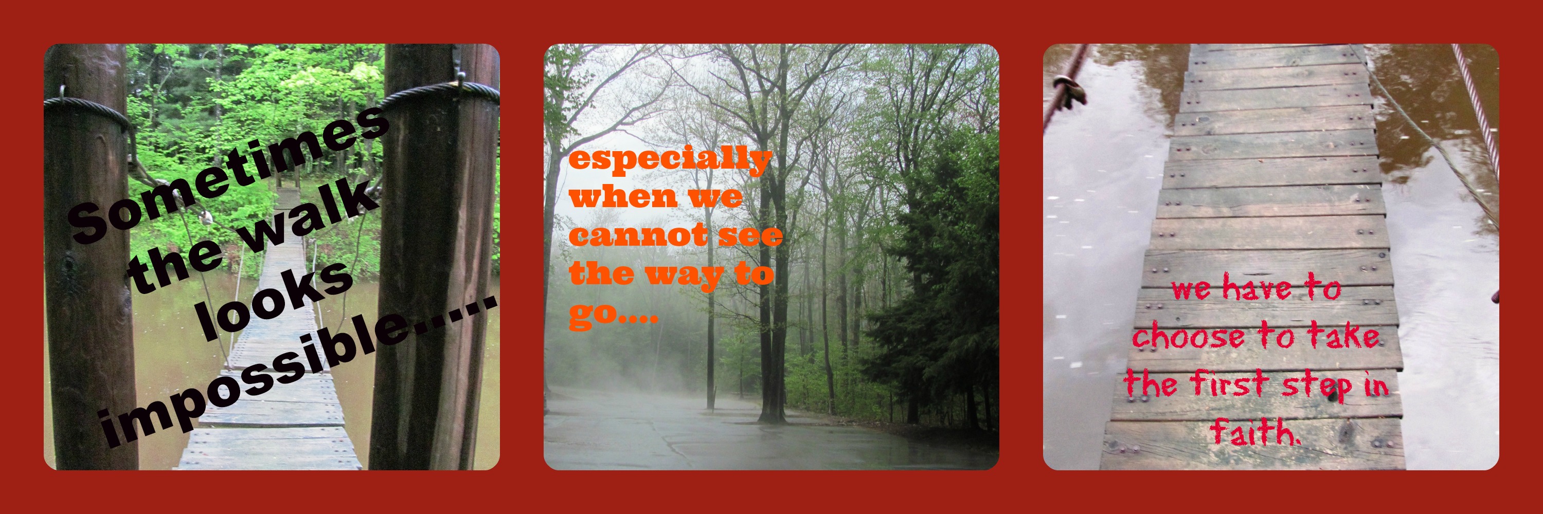 Finding your bridge in the fog and then taking that first step can be tricky. The devil will do everything he can to cause you to stumble. He is good at instilling fear for situations and that is why from the first step on the bridge to the last we have to trust in God to guide our steps. We need to believe in the plan. We need to know we are winners. We need to know that we know that we know that we know God is once again in control. He is really good at making what seems impossible, completely possible….every time.