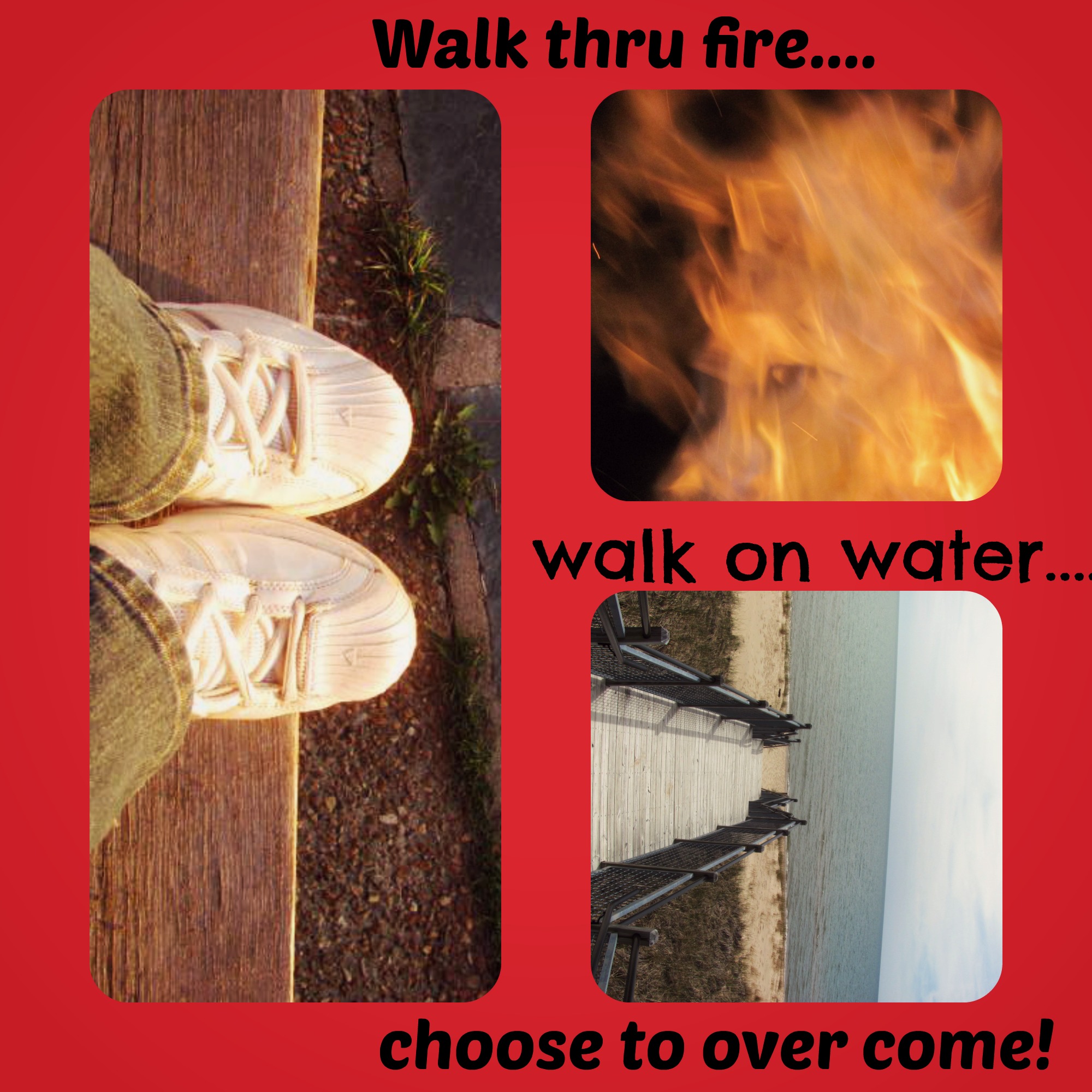I love fire and I love to look at water….swim..not interested. I have been contemplating what I want to do differently this year and I cannot decide if I want to walk through the fire or walk on the water. Each are of equal interest and will provide excellent strengthening for the tasks ahead yet I am at my wits ends deciding which route to take.