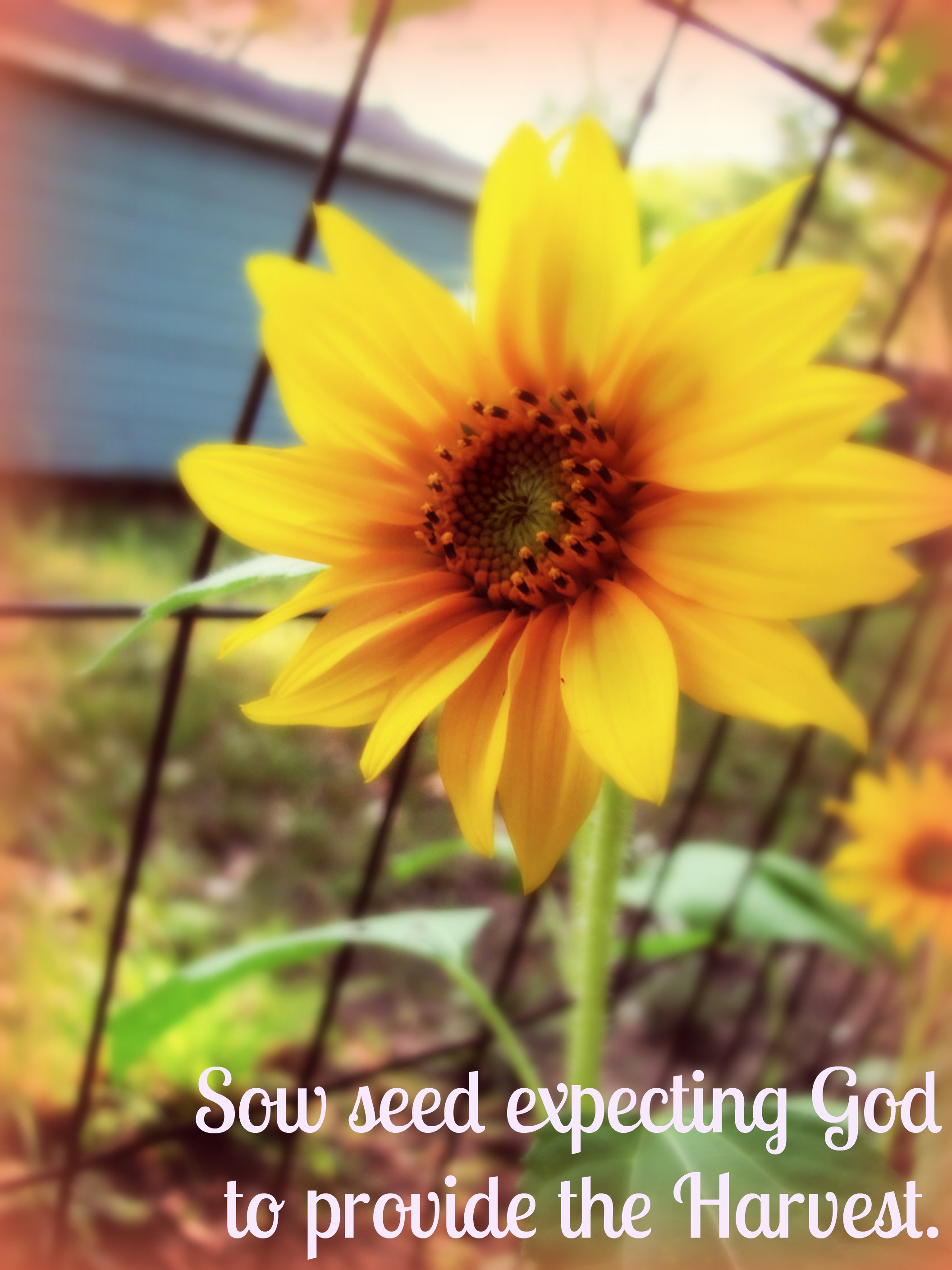 We need to come to the realization that sometimes it takes time for the return to happen. Take for example my husbands new truck that is blue-book valued at $6,000 but he got it for $3,000 with no issues….he has no idea which seed of faith he sowed to receive that..to me that was an apple seed. And example of a sunflower/pumpkin seed harvest would be that sometimes we sow a seed and the return does not come as we expected. Think about apples and the multitude of ways you can get it: apples, applesauce, apple juice..ect. Sometimes we sow a seed and it comes back to us how God sees fit not how we want it.