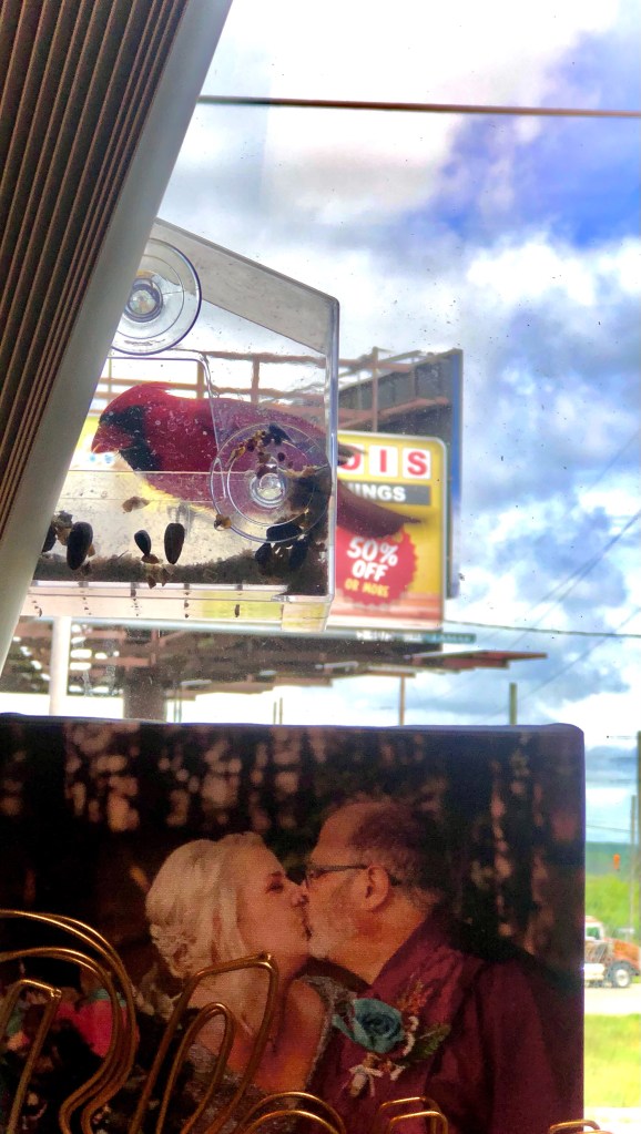 Then. Outta nowhere came this red breasted sparrow. He came not to partake in a feast. He chose not to sit on the perch. Instead he sat on top of the bird feeder. He looked right at me through the window and he started to sing. He sang the most beautiful song to me. As tears filled my eyes I saw for a moment what God saw.